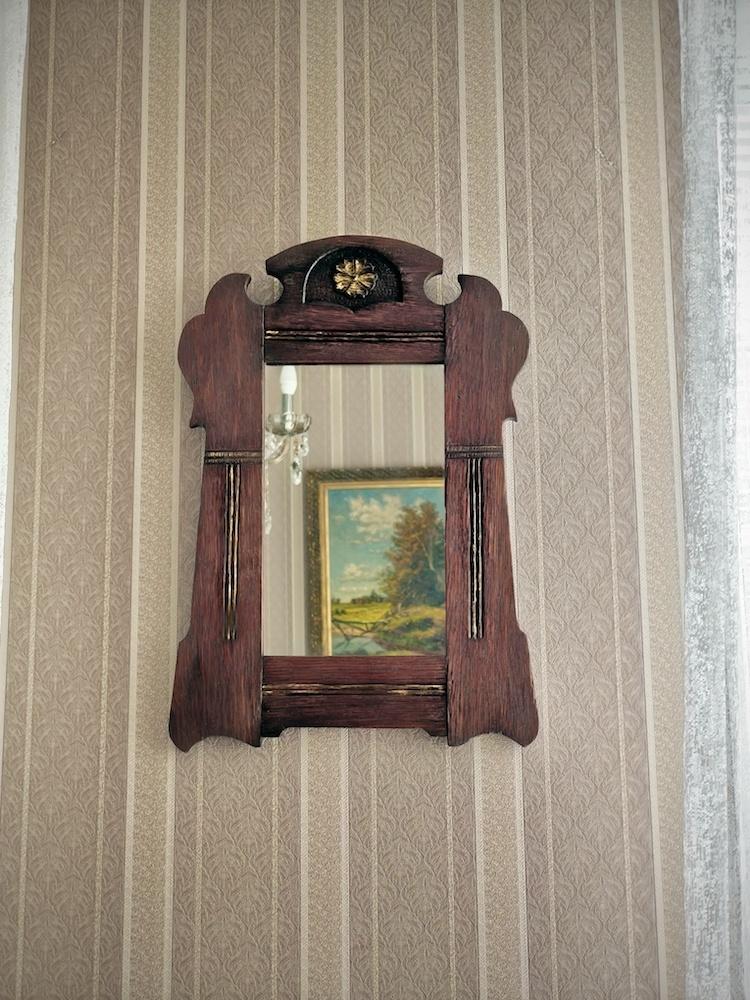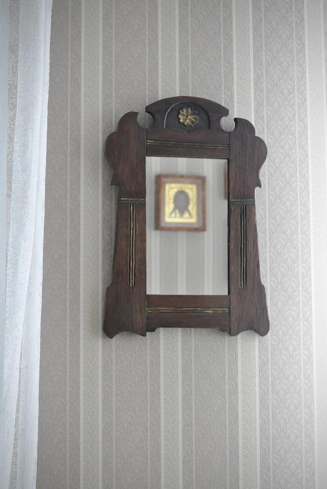 Рама конца XIX века приехала ко мне из Кинешмы, была бережно отреставрирована, покрыта маслом в оттенке «какао». Декор - интерьерный воск нескольких оттенков и патина в оттенке "старая бронза". Финишный слой - бесцветный воск.